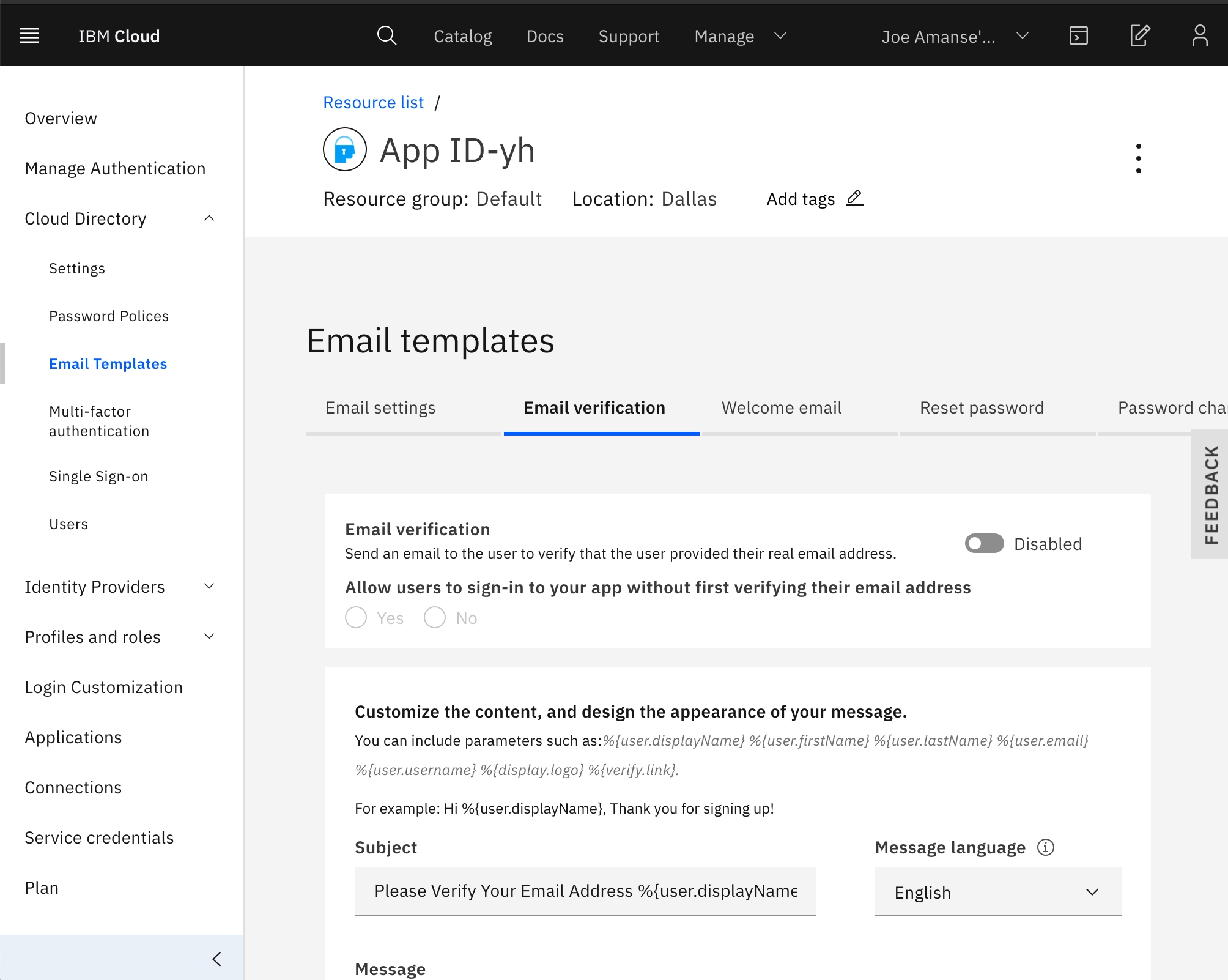 Create one with a name of appid-example-bank using the IBM Cloud dashboard https://cloud.ibm.com/catalog/services/appid